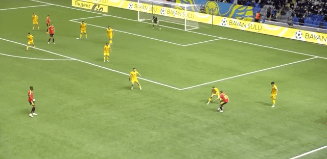 61'Arip tấn công vào khung thành của mình bằng một cú đâm, Anabekov đã cản phá xuất sắc để chặn bóng