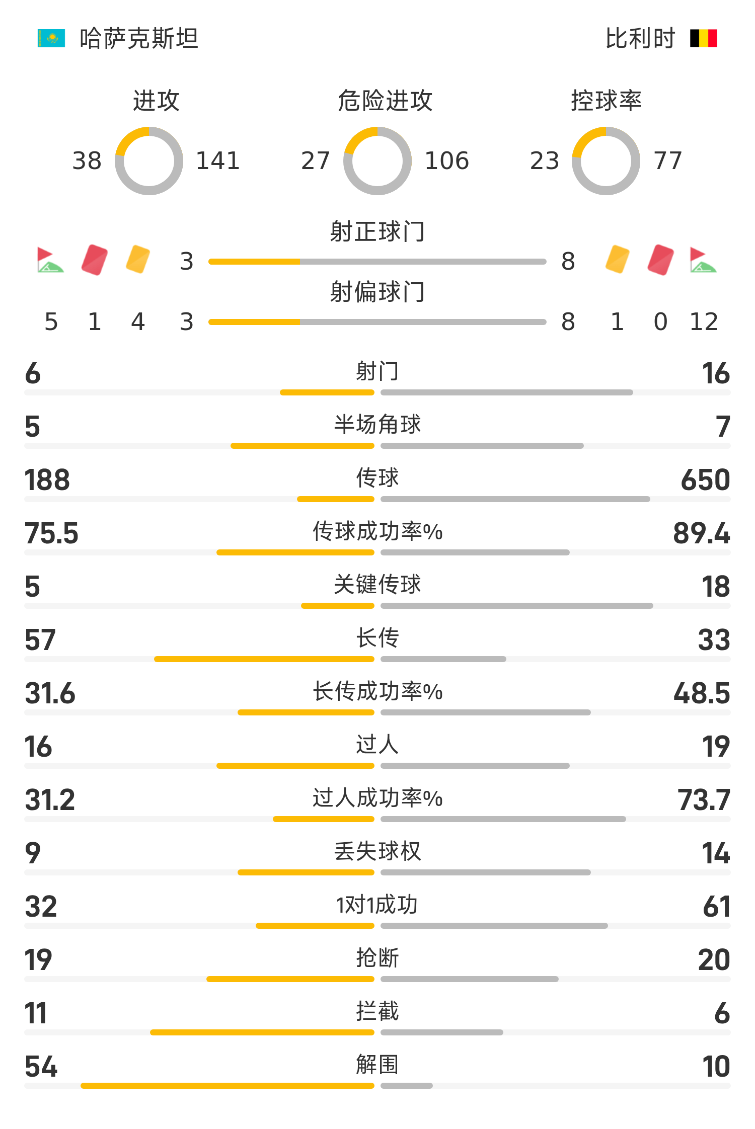 Đội hình xuất phát của Kazakhstan: 15-Anabekov, 11-Vorogovsky, 6-Kasim, 3-Arip, 5-Kerov, 20-Olazov (90'23-Kasabrat), 16-Tapalov (90'13-Zhukov), 10-Samorodov (80'18- Karaman), 9-Chesnokov, 7-Kenzhebek (57'4-Asilbek), 19-Satypev (56'17-Sviridov)
