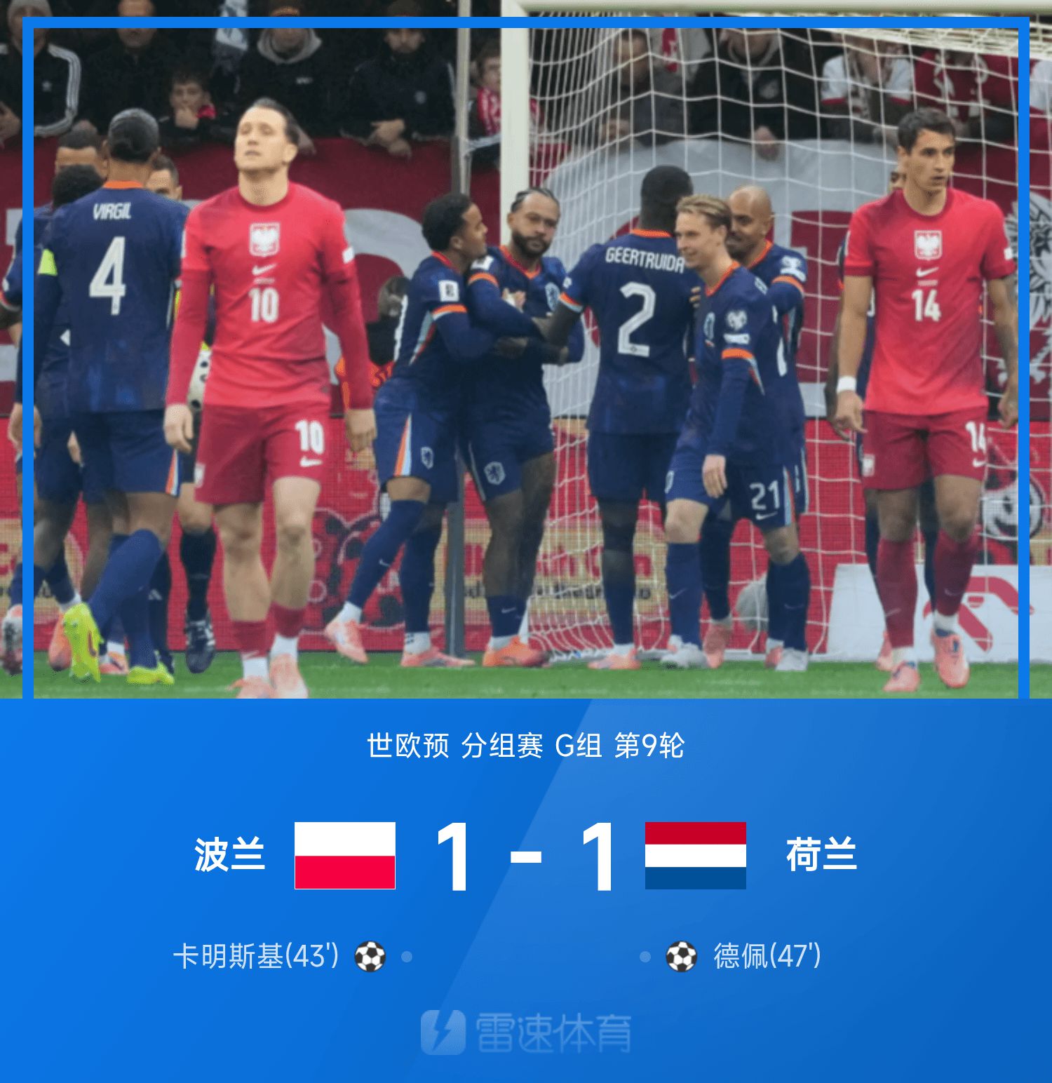 6686 Bản tin thể thao ngày 15 tháng 11 Ở lượt trận thứ 9 bảng G Vòng loại khu vực châu Âu thế giới lần thứ 26, Ba Lan đối đầu với Hà Lan. Hiệp một trận đấu diễn ra buồn tẻ cho đến phút 43, khi Lewandowski tung đường chuyền thứ hai hỗ trợ Kaminski đẩy góc xa ghi bàn. Ba Lan bước vào giờ nghỉ giữa hiệp với bàn thắng dẫn trước. Đầu hiệp hai, Depay ghi bàn gỡ hòa bằng cú sút quét trong tình huống cận chiến ở khu vực ba giây. Kể từ đó, đôi bên không thể cải thiện tỷ số và Hà Lan hòa 1-1 với Ba Lan trên sân khách. Hà Lan hiện dẫn trước Ba Lan 3 điểm và có hiệu số 13 bàn, về cơ bản giữ một vị trí dẫn thẳng đến World Cup ở Hoa Kỳ, Canada và Mexico.