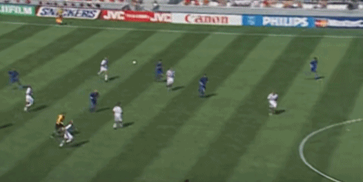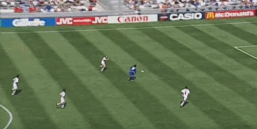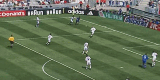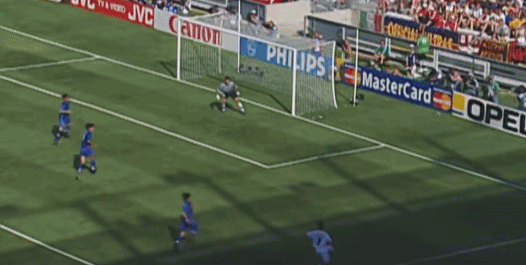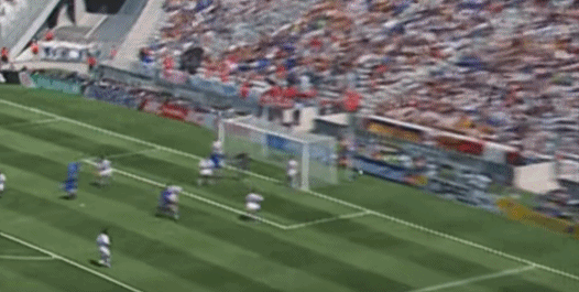 Ở phút thứ 10, Dino Baggio tung cú sút cực mạnh từ ngoài vòng ba giây, bóng bay ra ngoài vạch cuối sân.
