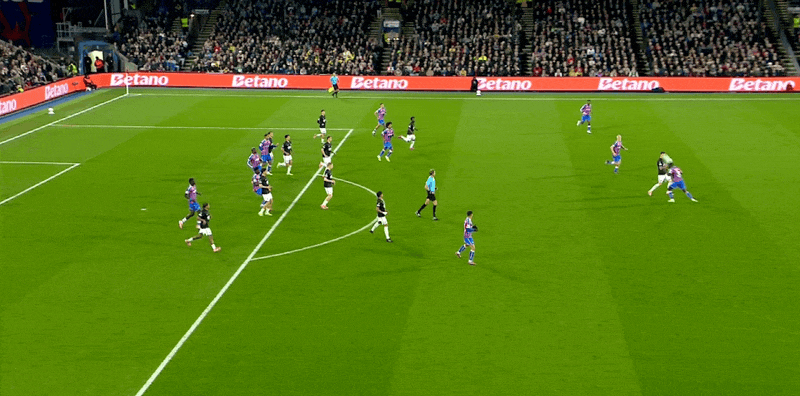 Đội hình xuất phát của Crystal Palace: 1-Henderson, 6-Guey, 5-Lacroix, 26-Richards, 19-Hughes, 8-Lerma, 7-Sar, 2-Munoz, 3 -Mitchell, 10-Pino, 14-Matteta