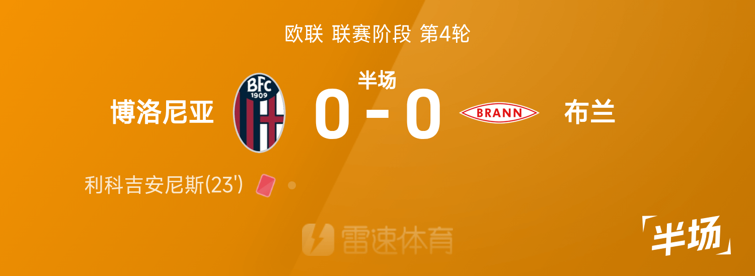 Hiệp 1 Europa League: Rico Giannis bất ngờ nhận thẻ đỏ, Bologna 10 người tạm dẫn 0-0 Bran