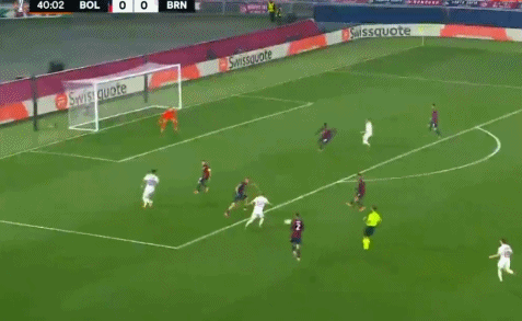 18’ Một pha phản lưới nhà nguy hiểm! Bologna tấn công từ cánh phải, đường chuyền của Bernardeschi từ vòng cấm suýt dội vào khung thành
