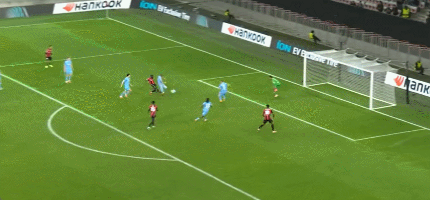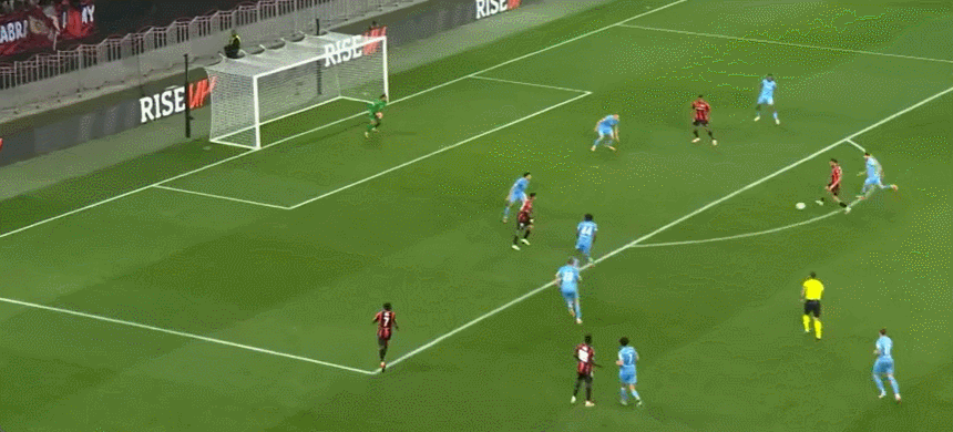 63' Nice bao vây đối thủ, Govia lốp bóng vọt xà ngang, và Samed tiếp theo bằng cú sút cao hơn xà ngang một chút
