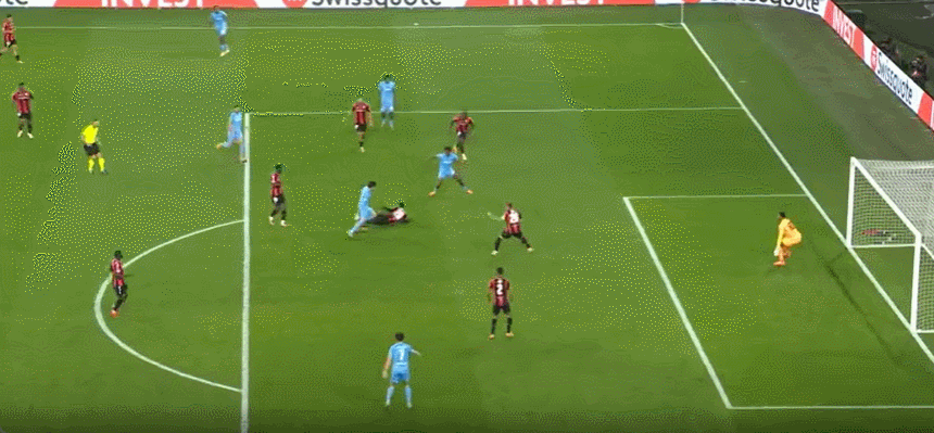 88’ Sanson đưa bóng ra ngoài vòng ba giây, vượt qua hậu vệ rồi sút từ bên ngoài. Bóng đi vọt xà ngang