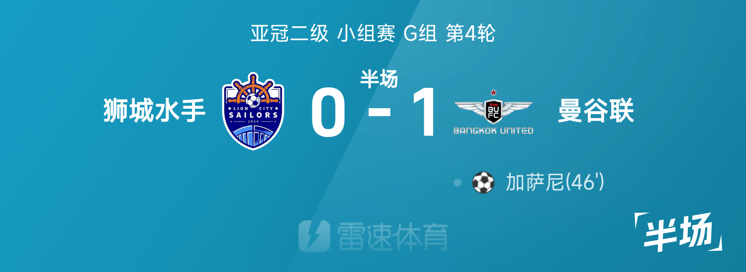Hiệp 2 AFC Champions League: Gassani ghi bàn ở phút bù giờ, Lion City Mariners tạm dẫn Bangkok United 0-1