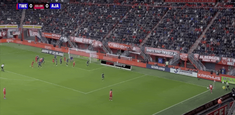 18' Verhorst quay người và rê bóng trong khu vực ba giây và ghi bàn thắng đầu tiên của trận đấu cho Ajax