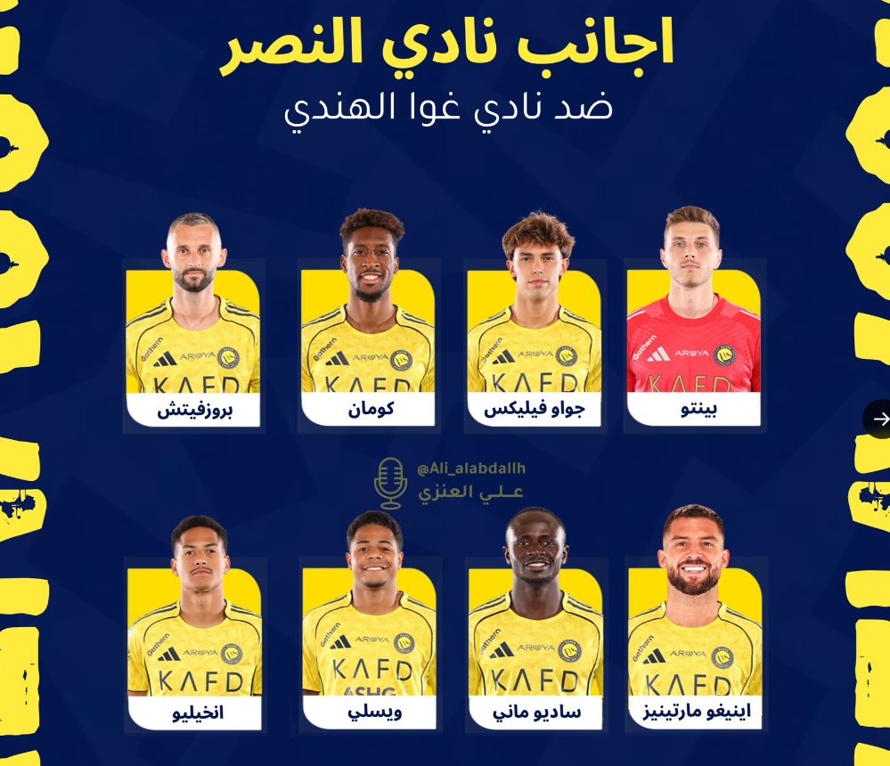 6686 Bản tin thể thao ngày 6 tháng 11 Theo báo cáo của phóng viên alabdallh của đội Riyadh, 8 cầu thủ nước ngoài đã lọt vào danh sách thi đấu cấp hai AFC Champions League cùng với Goa, còn Ronaldo, Simakan và những người khác vắng mặt.