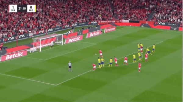 62’ biển cảnh báo vi phạm Prestiani (Benfica)