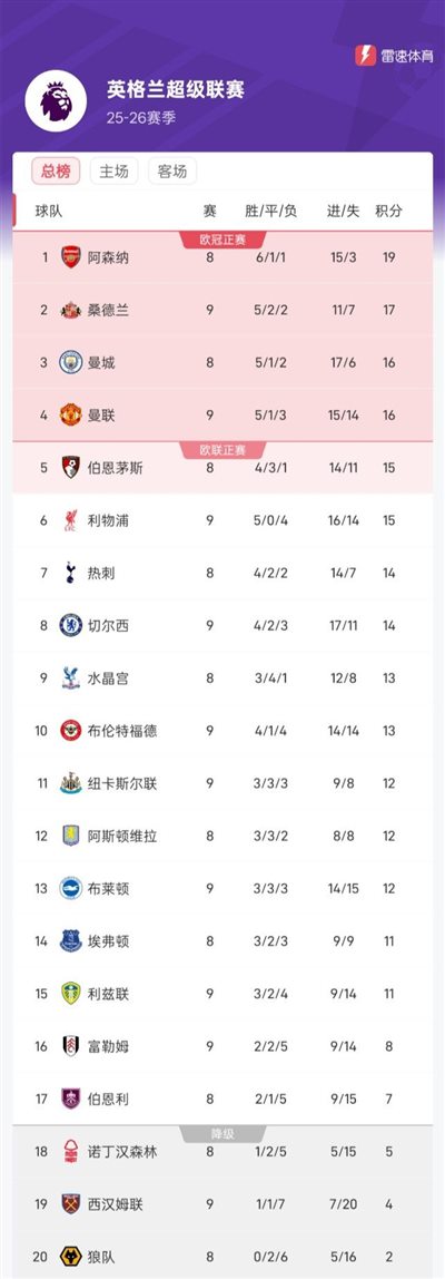 6686 Thể thao, ngày 26 tháng 10 Tính đến sáng sớm hôm nay, giờ Bắc Kinh, vòng 9 Ngoại hạng Anh mùa giải 25/26 đã kết thúc thi đấu 5 trận và thứ hạng điểm của đội cũng thay đổi theo.