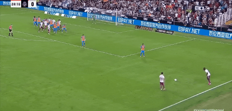 29' Pepelu đã thực hiện một quả đá phạt trực tiếp trước khu vực 3 giây, bóng bay về phía khán đài