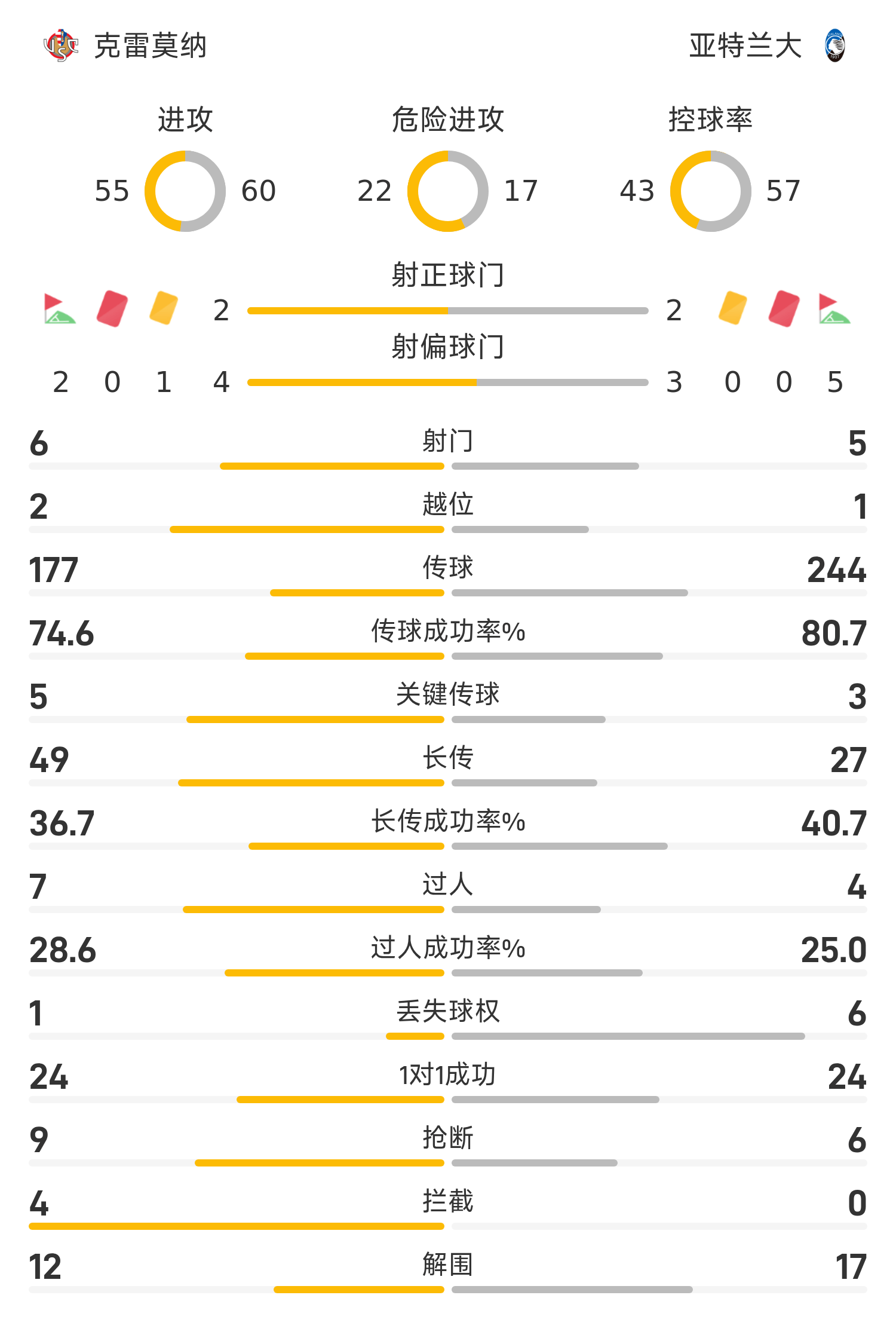 45'De Ketrare đánh đầu đưa bóng về phía khung thành, thủ môn Cremona tịch thu bóng
