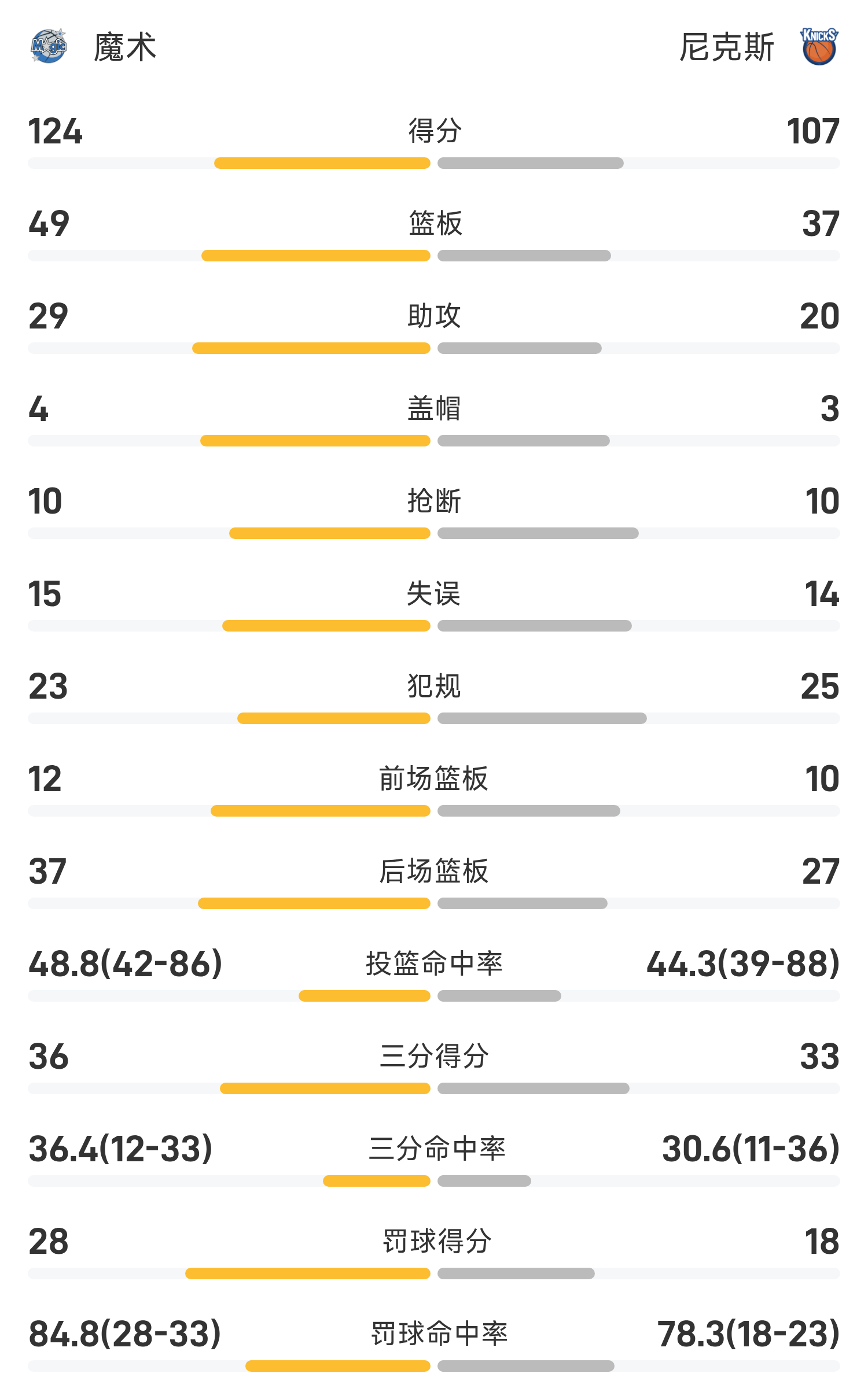 Wagner ghi 28 điểm, 9 rebound và 4 kiến tạo để dẫn dắt đội giành chiến thắng, trong khi Brunson ghi được 31 điểm, 3 rebound và 6 kiến tạo, cao nhất trận.