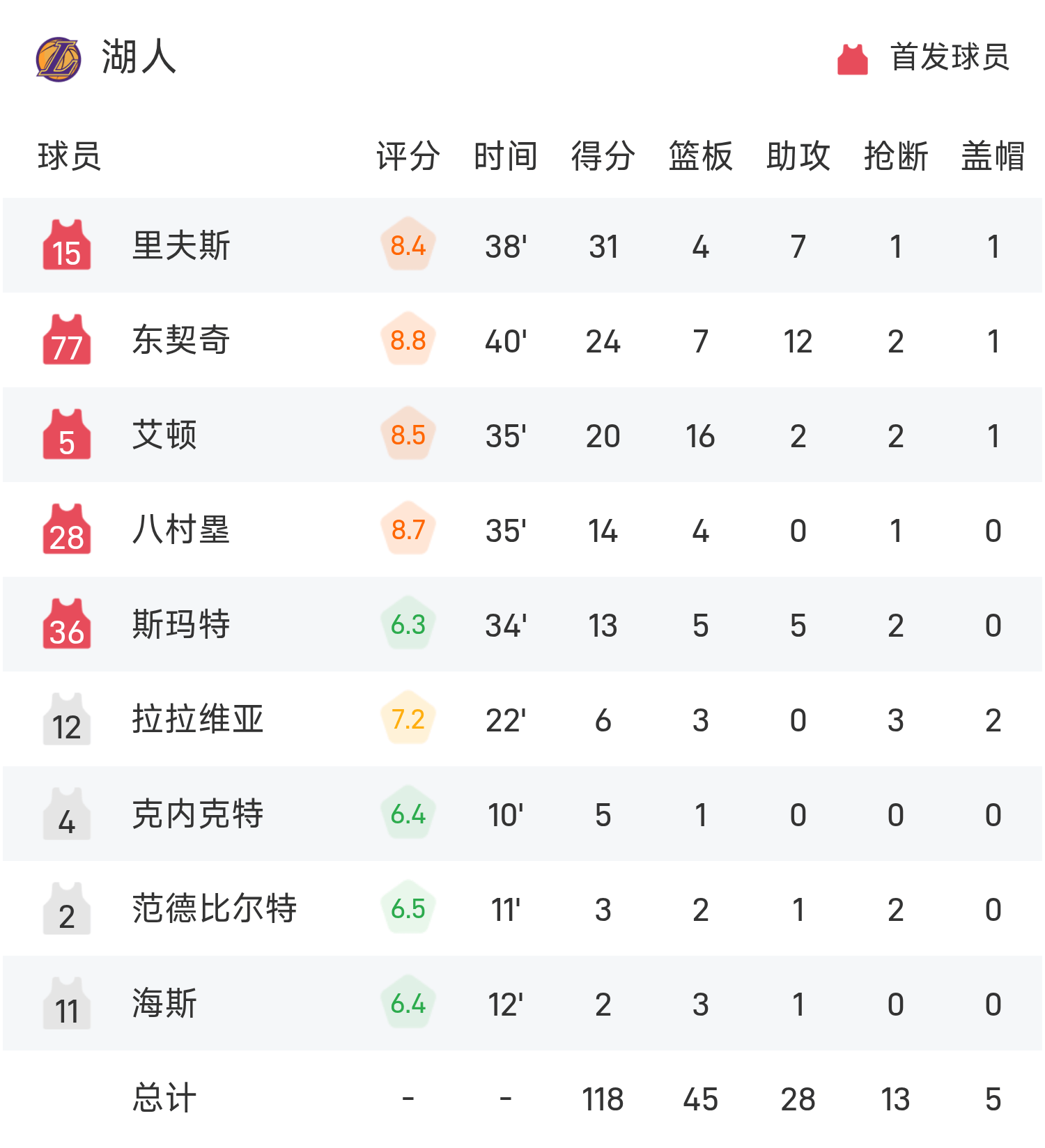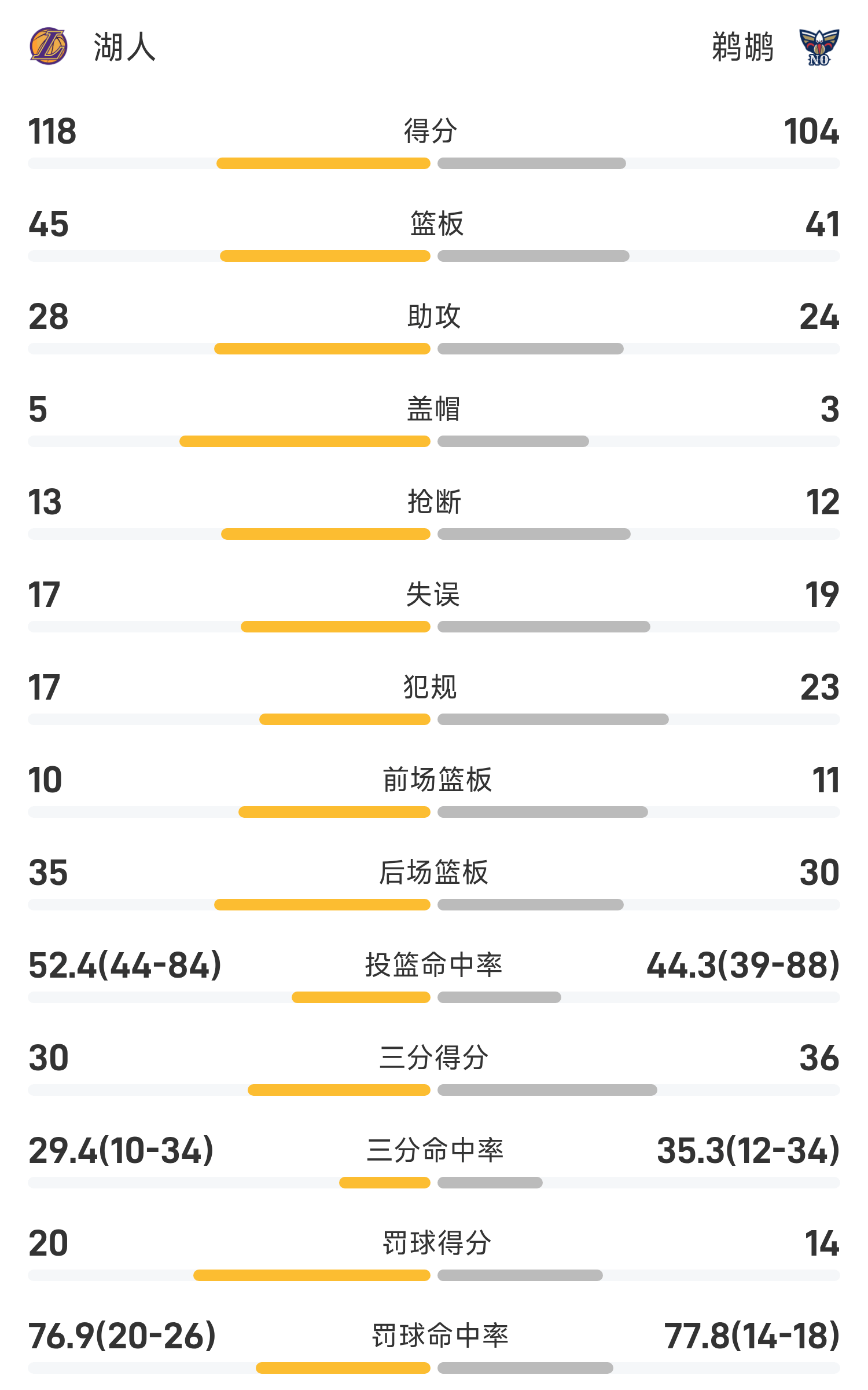 Cuối trận, Pelicans thua Lakers với tỷ số 104-118.
