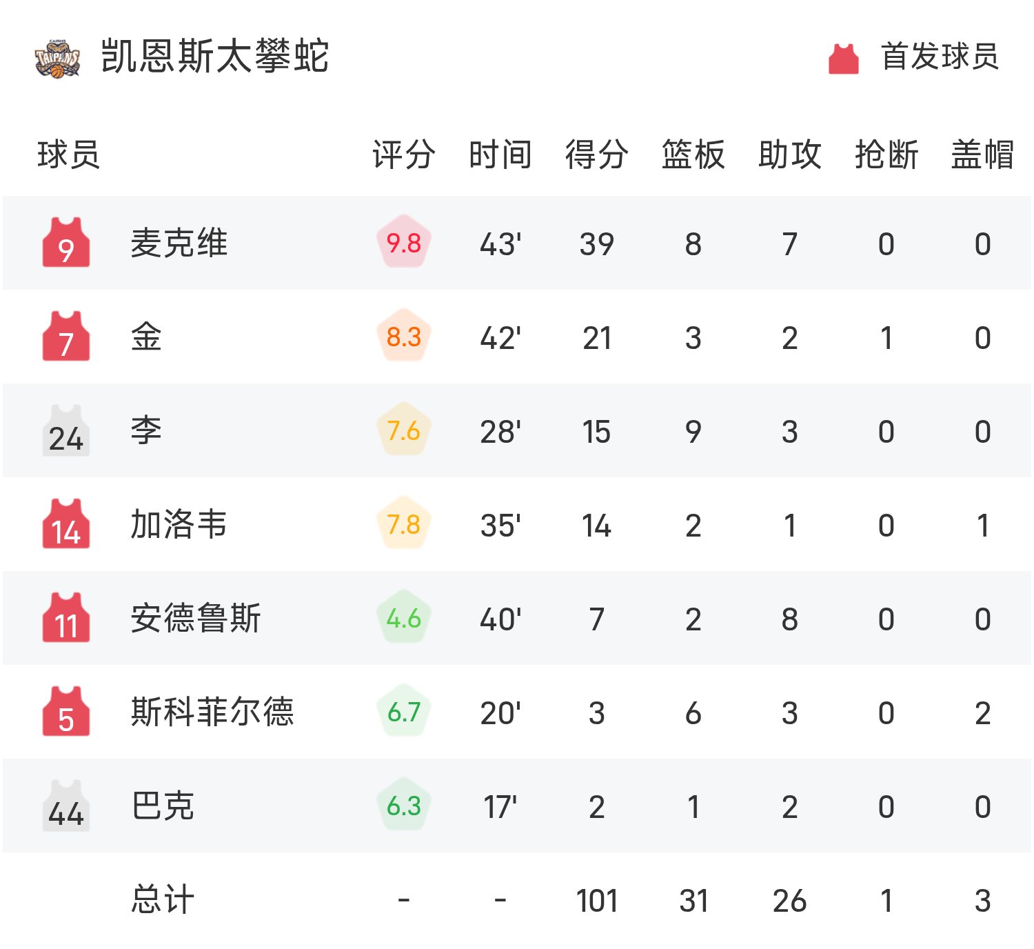 Báo cáo trận chiến NBL: Cotton có 41 điểm và 8 kiến tạo, 36 người suýt đánh bại Taipan Snake ở playoff 105-101