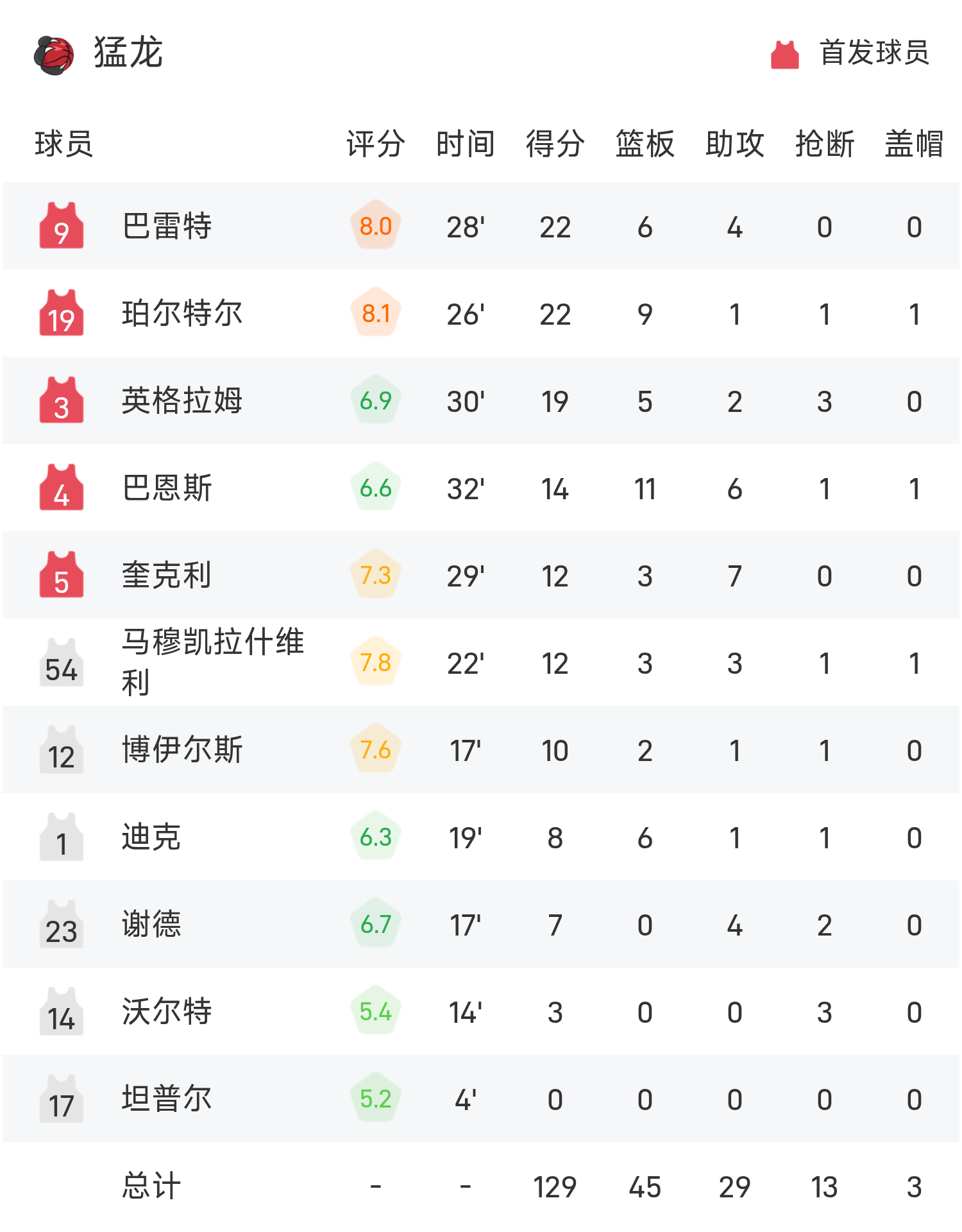 Barrett ghi 22 điểm, 6 rebound và 4 kiến tạo để dẫn dắt đội đến chiến thắng. Siakam ghi được 30 điểm cao nhất trận, 4 rebound và 3 kiến tạo.