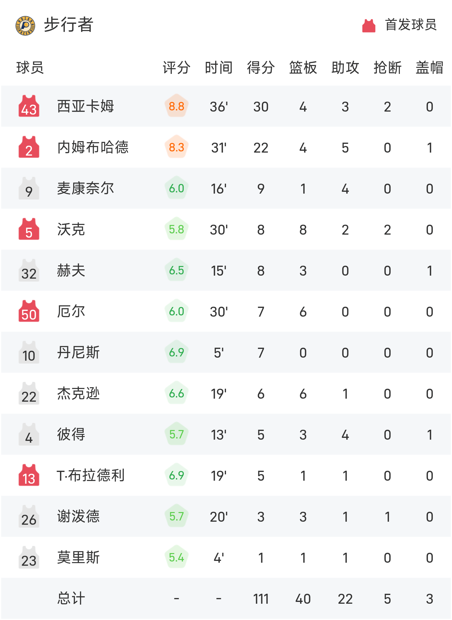 Cuối trận, Pacers thua Raptors với tỷ số 111-129.