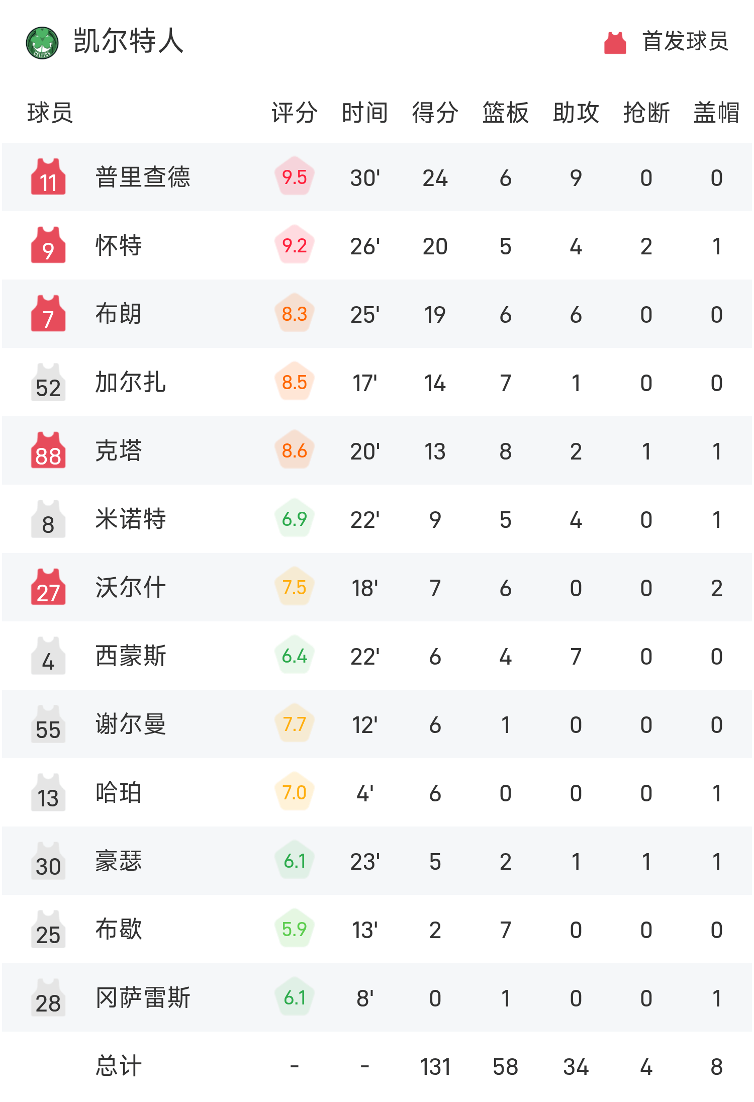 Pritchard ghi được 24 điểm cao nhất trận, 6 rebound và 9 kiến tạo, đưa Celtics đến chiến thắng.