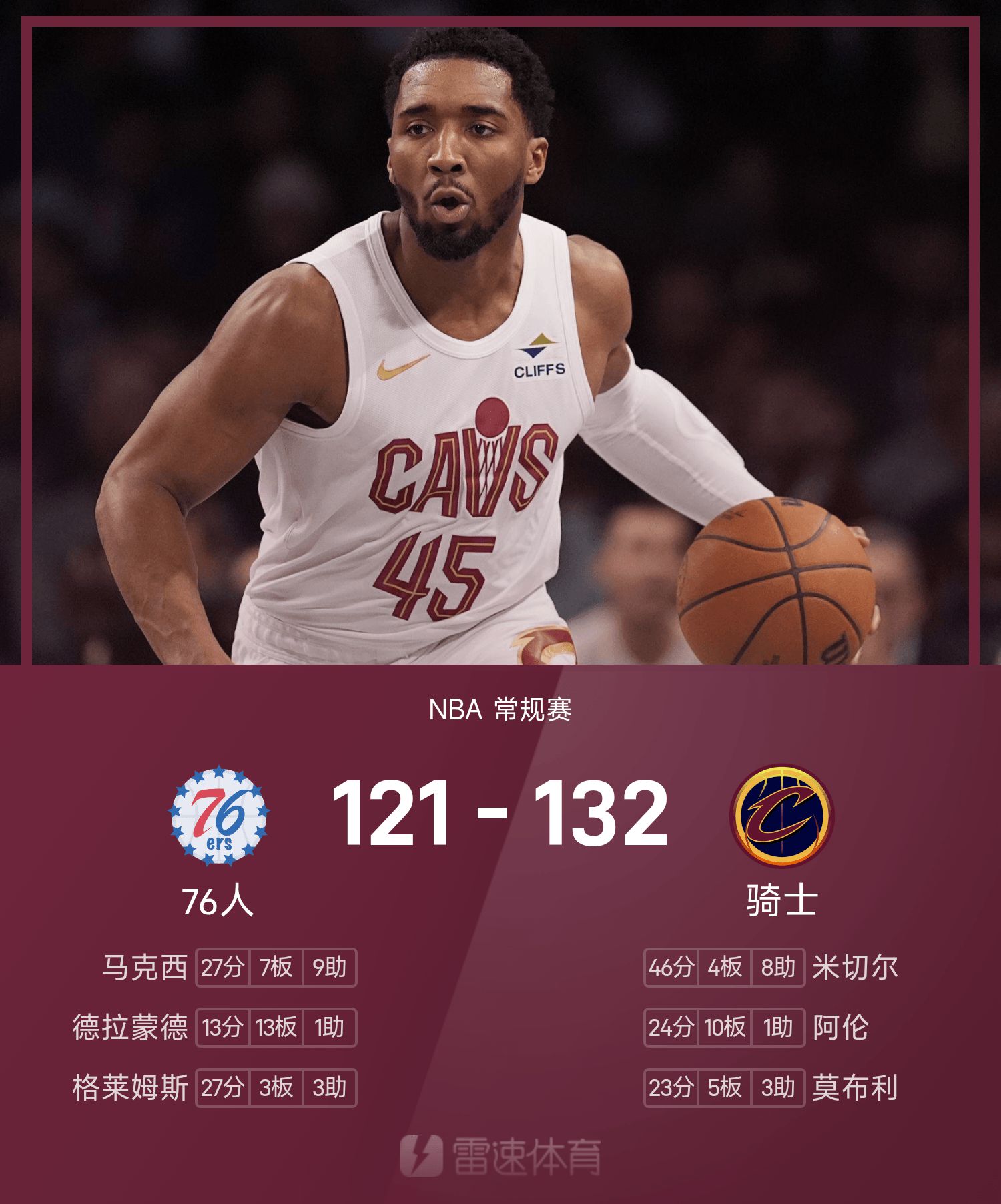 Mitchell đã ghi được 46 điểm cao nhất mùa giải và Cavaliers đã đánh bại 76ers.