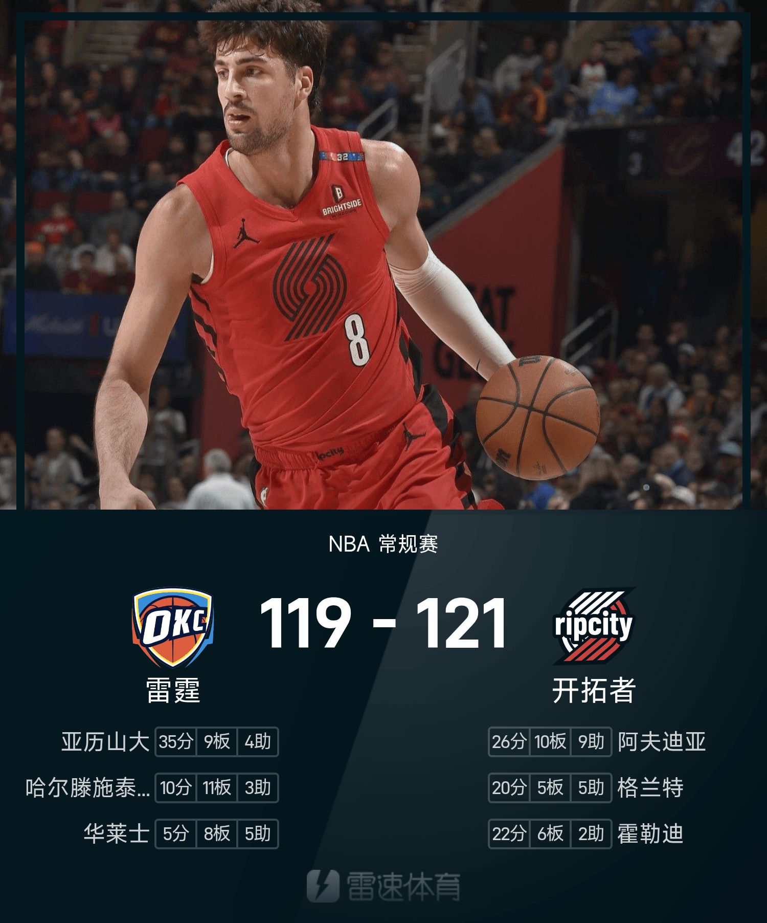 Afdija ghi được 26 điểm, 10 rebound và 9 kiến tạo, còn Alexander ghi được 35 điểm và 9 rebound.