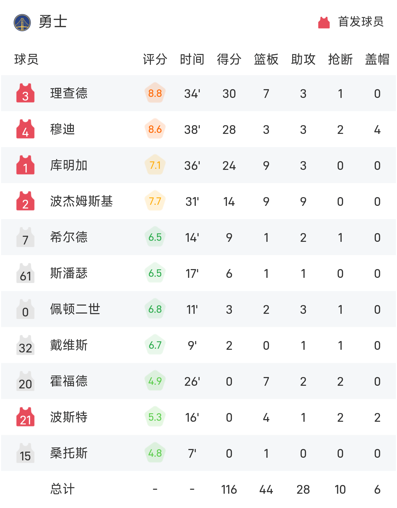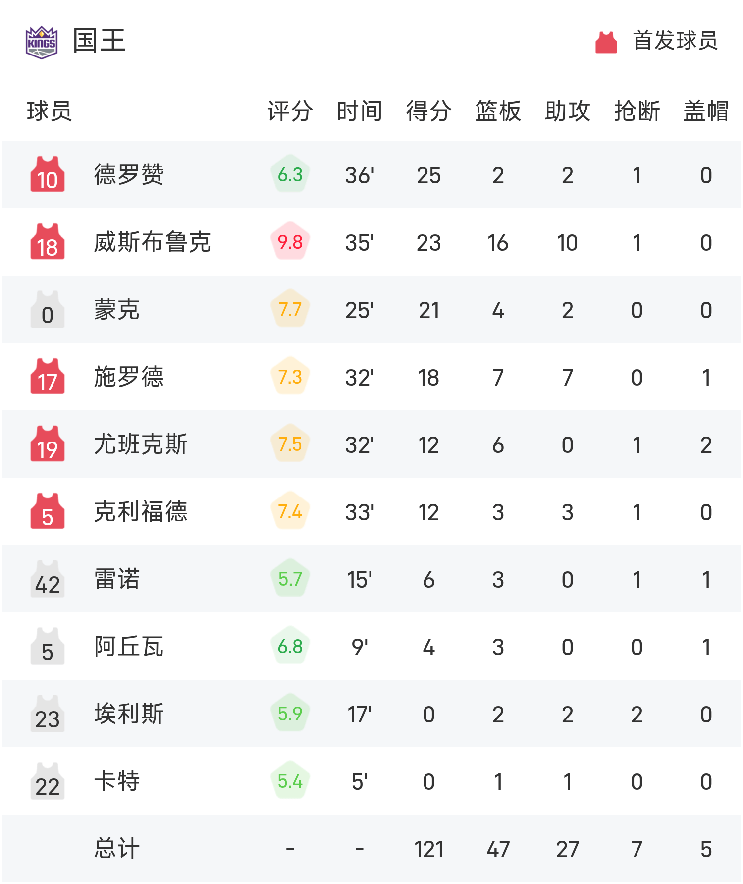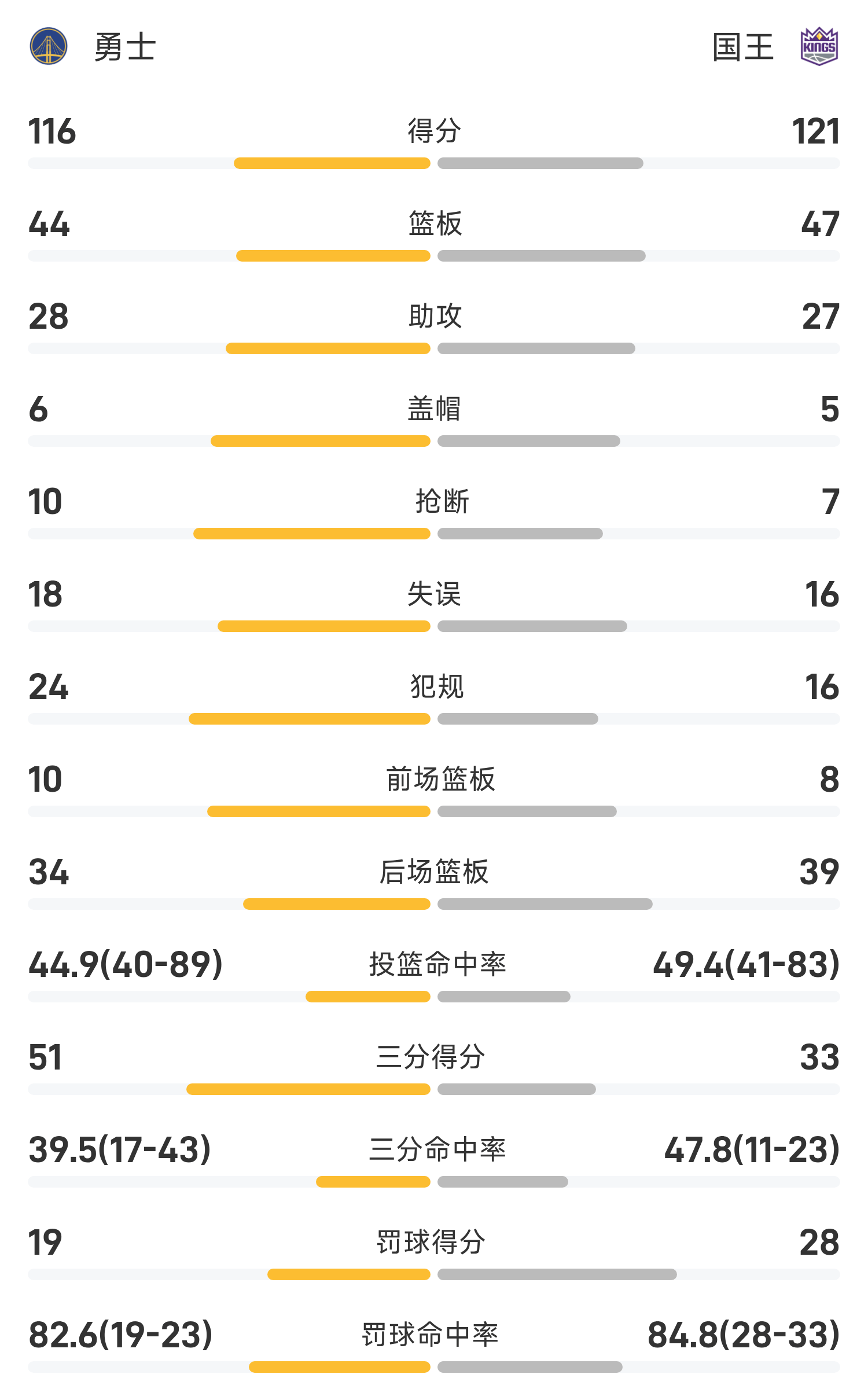 Kết thúc trận đấu, đội Kings đã đánh bại Warriors với tỷ số 121-116.