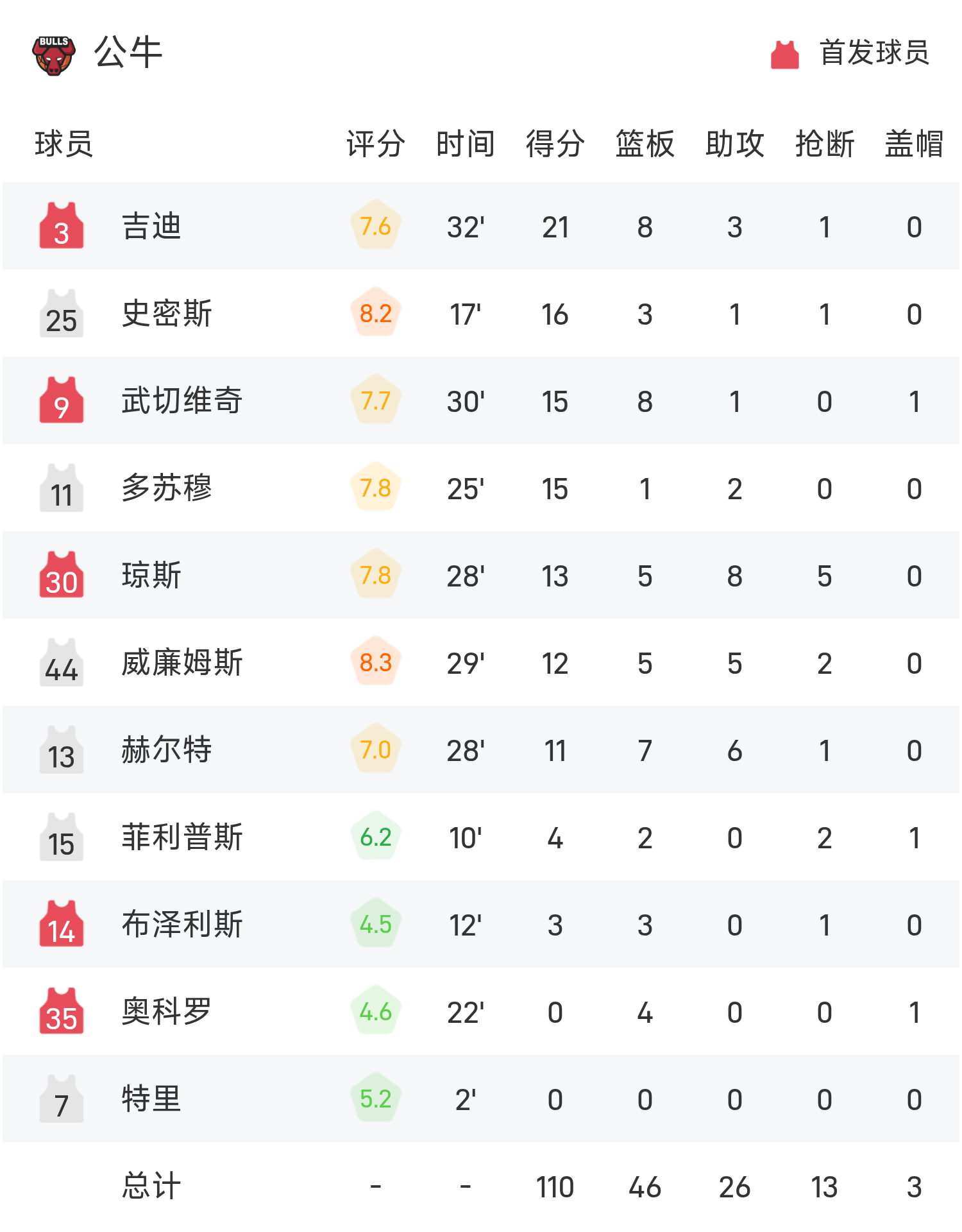 Cuối trận, Magic thua Bulls với tỷ số 98-110.