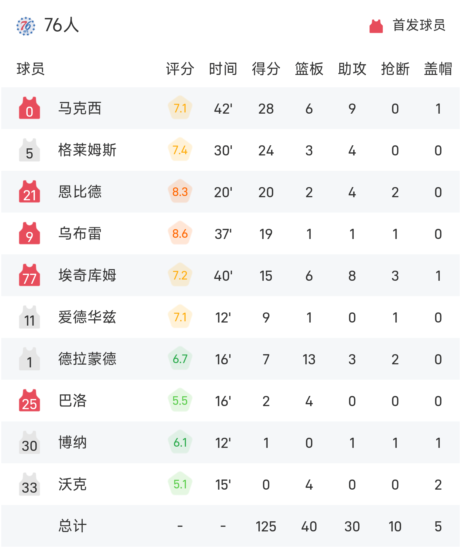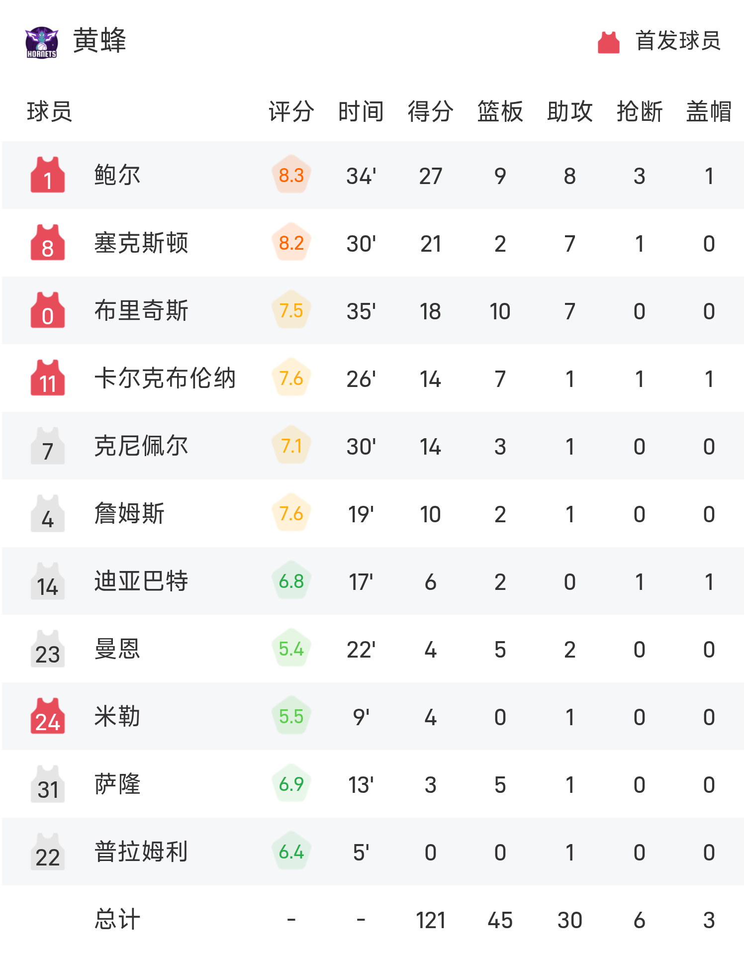 Cuối trận, 76ers đã đánh bại Hornets với tỷ số 125-121.